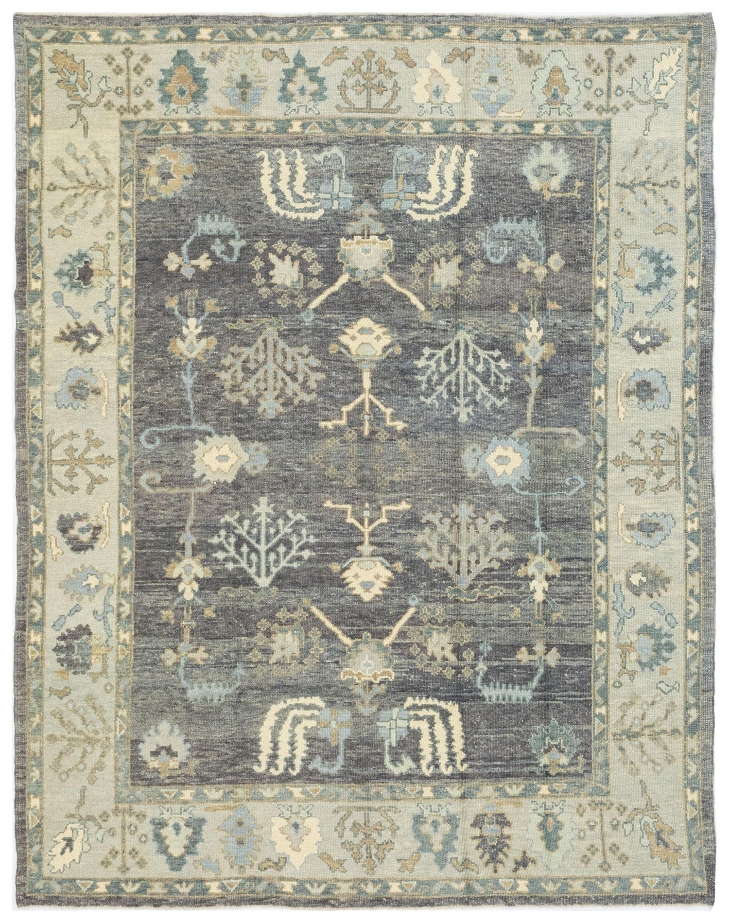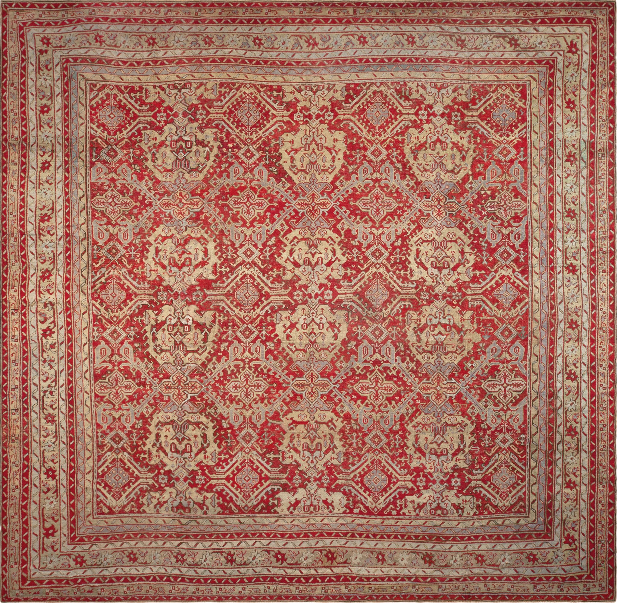 This exceptional antique Oushak rug reflects the rich heritage of traditional Turkish craftsmanship, skillfully hand-knotted and deeply rooted in centuries-old weaving traditions. Its balanced, symmetrical composition hints at tribal influences with subtle Persian-inspired aesthetics, carrying cultural depth woven into every detail.